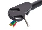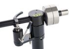 Precise fine tuning and repeatable adjustment of tonearm height by means of integrated bubble level and vertical threaded adjustment rod.